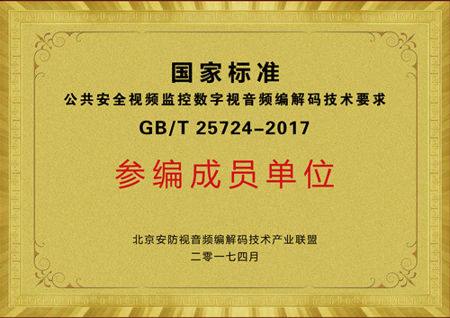 國家標準公共安全視頻監(jiān)控數(shù)字視音頻編解碼技術(shù)要求參編成員單位